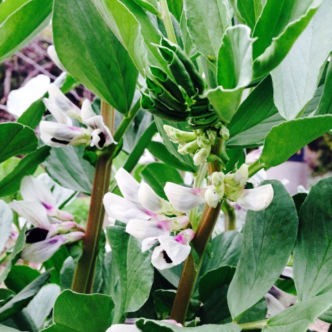 清楚であり存在感のあるこの花はそら豆の花です。